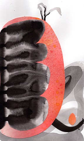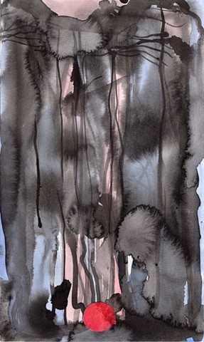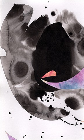 These ink studies that incorporate collage allow for experimentation and offer a window into the subconscious. Done very spontaneously, yet built over time, they convey a variety of themes and emotive possibilities.